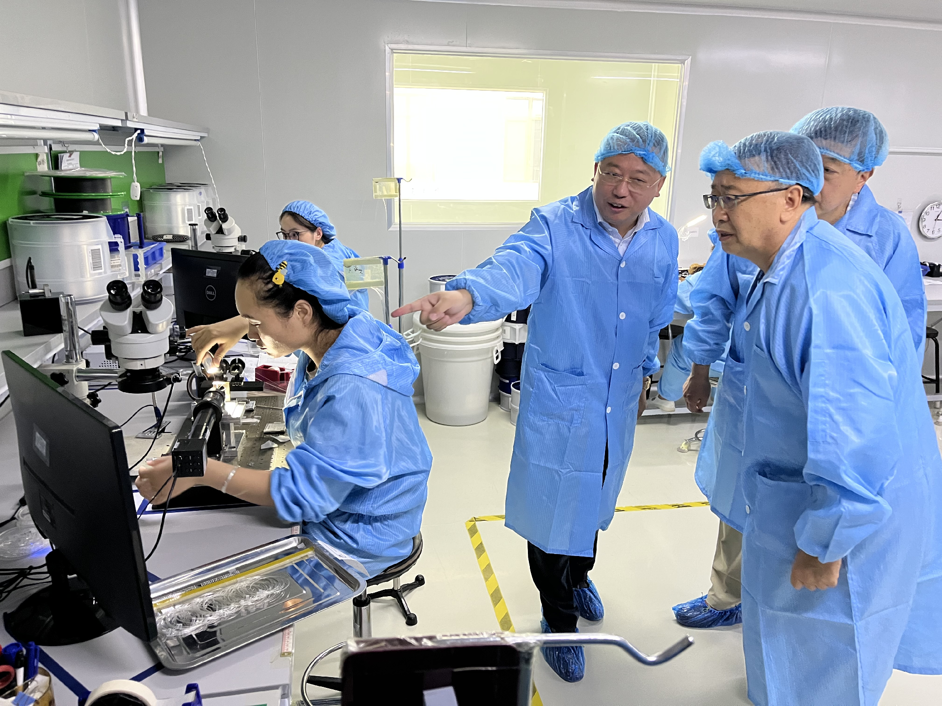 考察团首先参观了越海集团发展史展览馆、无尘工作车间、工业飞秒激光项目,实地了解企业生产经营情况,听取越海集团发展历史和近年来推进产业升级情况介绍。随后,召开了校企合作座谈会。