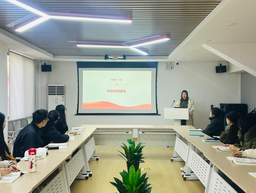 会上,各辅导员依次围绕班情分析、自身优势、特色班级建设、具体实施计划、预期成果等方面展开分享。其中,辅导员李同花介绍了她所带班级的“科技创新”特色建设经验,她通过组织学生参加科技讲座、创新竞赛和学生社团,激发学生对科学技术的兴趣和热情,有效提升了学生的创新能力和实践能力。李老师还分享了如何通过建立班级科技小组和科技成果展示平台,营造浓厚的科技创新氛围。