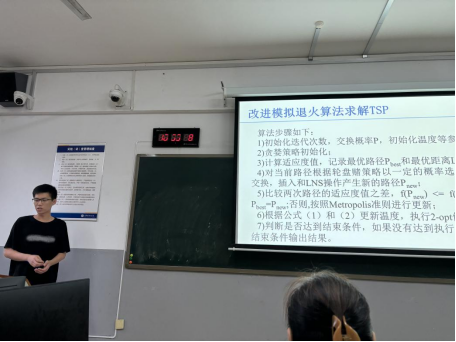 本活动采用PPT汇报+问题研讨的方式进行。活动汇报的主要内容为研究背景意义、改进模拟退火算法求解TSP、并行模拟退火算法求解TSP、总结与展望。